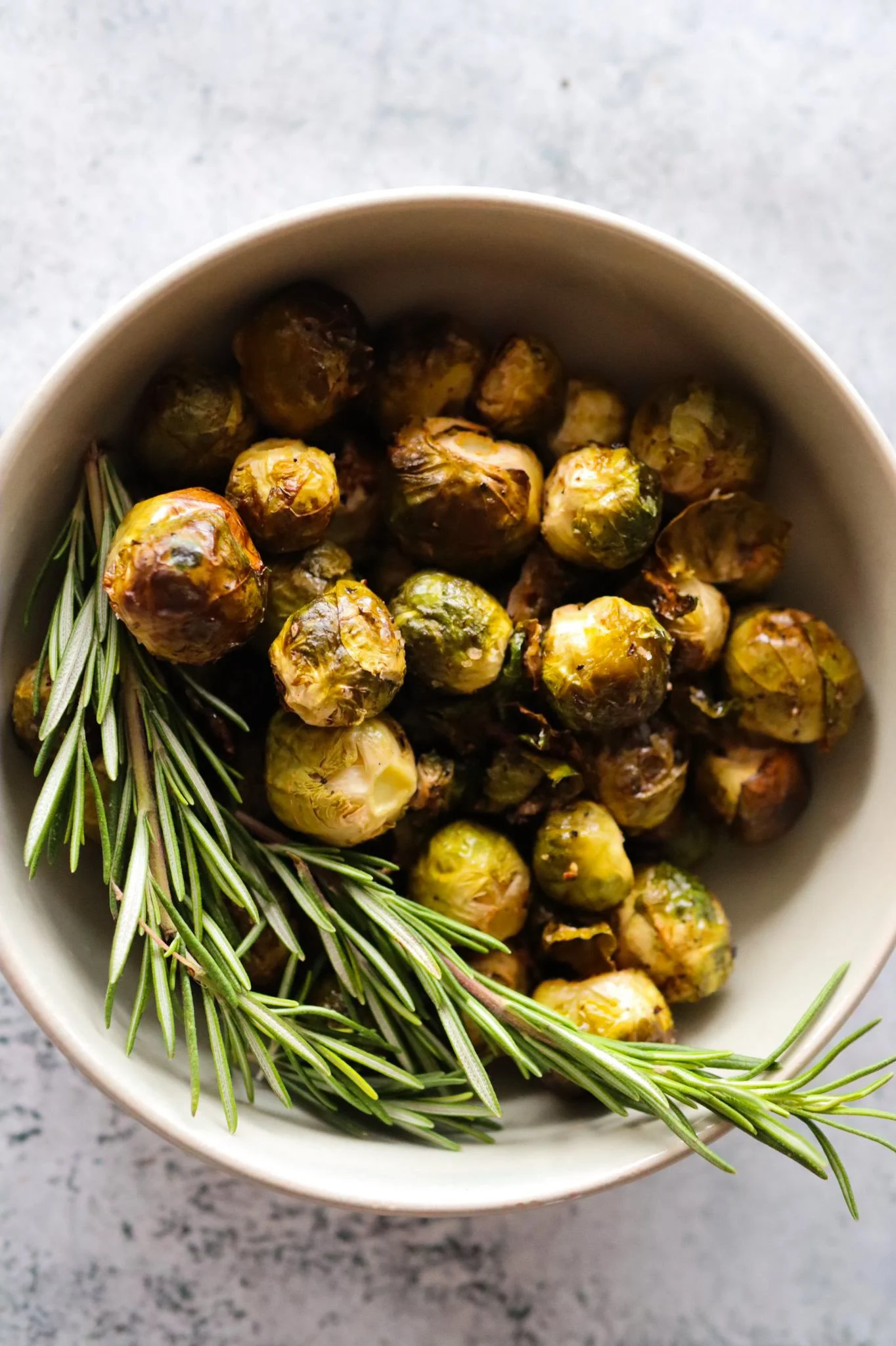 Verwijder de kontjes van de spruitjes en meng met olie, rozemarijn, peper en zout.